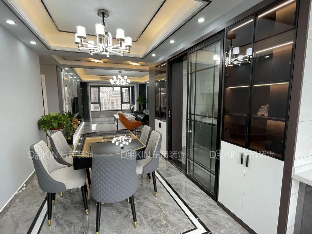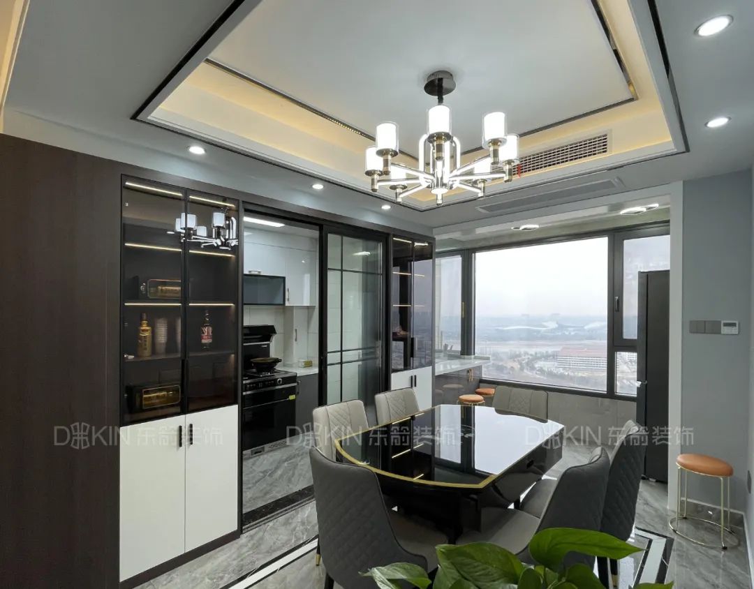 2.餐廳與廚房們的區(qū)域做了酒柜滿足儲(chǔ)存和美化空間的作用。