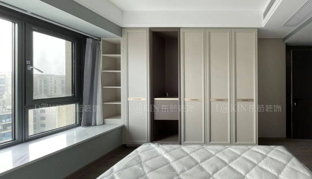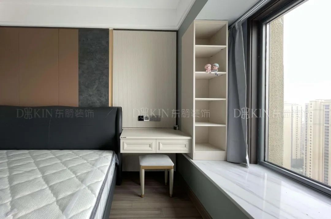 3.主臥定制衣柜和梳妝臺體現(xiàn)居家實(shí)用感和烘托整體空間層次感。