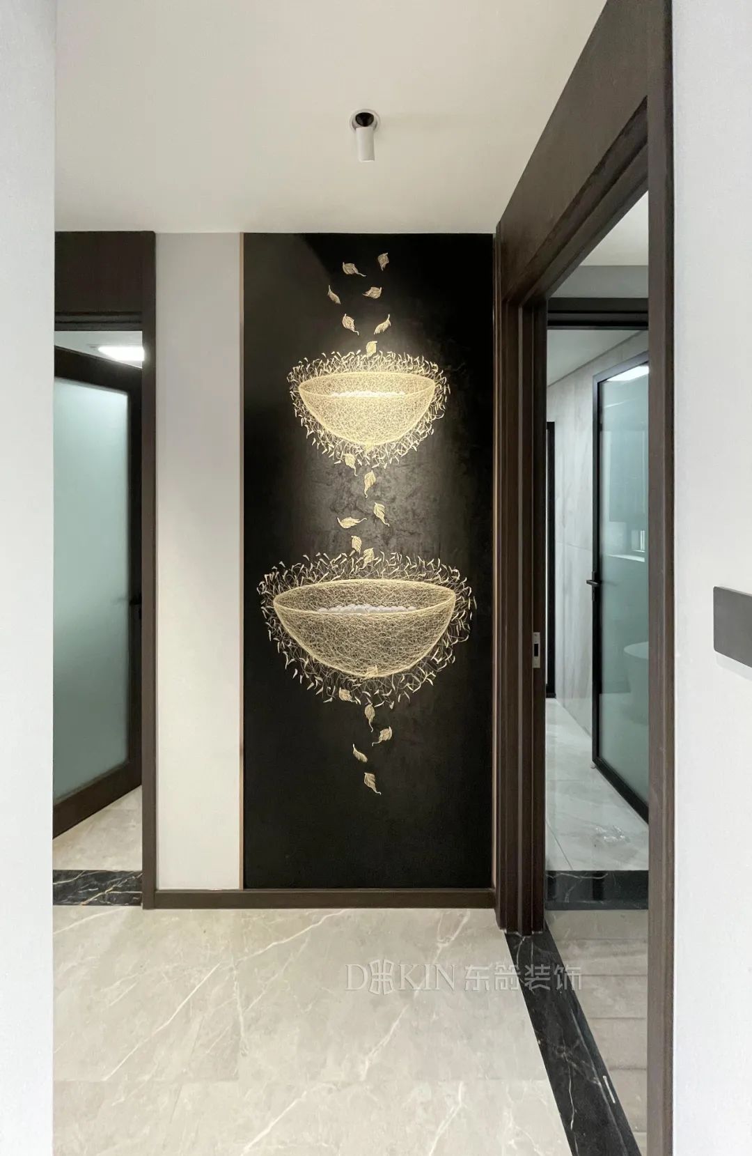 玄關(guān)掛畫簡約自然,整個(gè)給人的感覺就是簡約年輕化,凸顯了層次和神秘感,整體為意蘊(yùn)深長的現(xiàn)代主義。